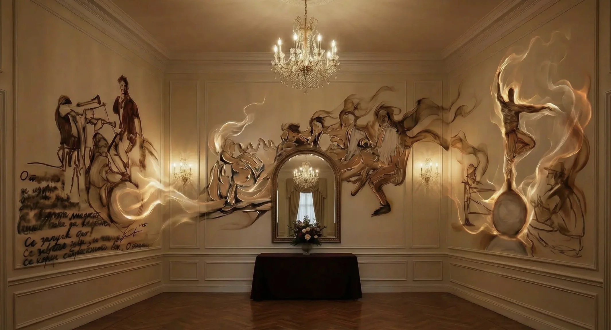 Concept: 360° Fire-Reflection Mural Encircling the Walls of the Embassy Reception Hall